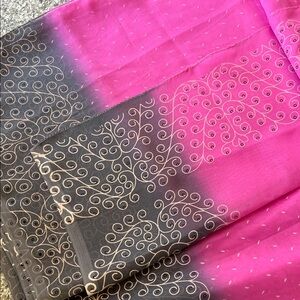 Stylish pink and gray Sari with intricate patterns. No blouse. Just sari.