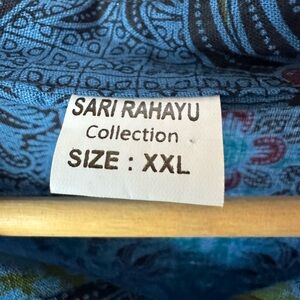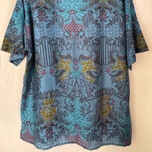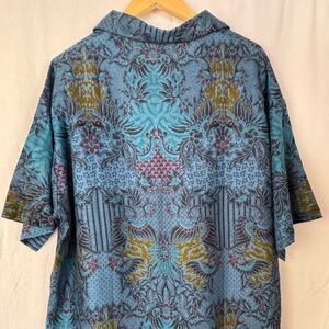 Men’s short sleeve shirt from Indonesia, never been worn, batik print in vivid blues, cotton blend