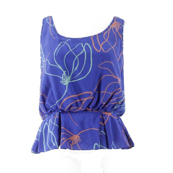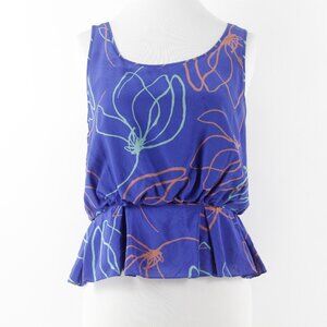 Sariah Sz 6 Royal Blue Multi Lined Back Buttons Peplum Silk Polyester Top
