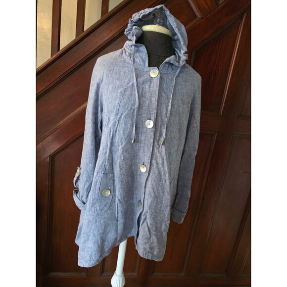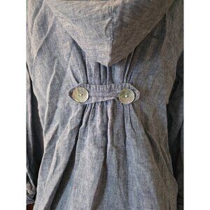 Sarid Olsen Hooded Blue Linen Blend Button-Up Jacket Medium W/ Side Pockets