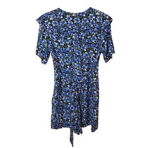 Sarin Girls Size M Short Romper Blue Floral Tie Waist Button Up Rayon Pockets