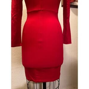 Sarin Mathews Deep V Neck Ruched Bodycon Long Sleeve Mini Dress Red NWT Size XL