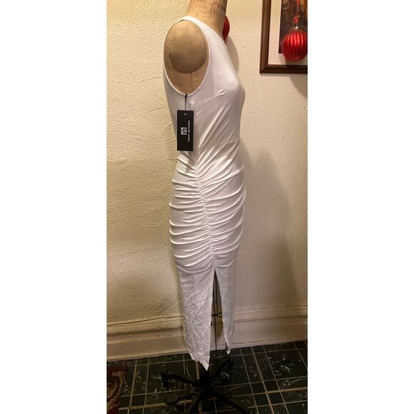 Sarin Mathew’s One Shoulder Ruched Cut Out Back Bodycon White Dress NWT Size M