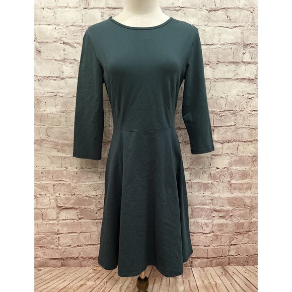 Sarin Mathews Womens Green Stretch Knit A-line Skater Dress 3/4 Sleeve - Size S