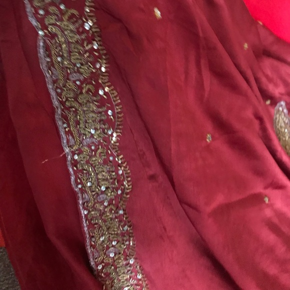 Beautiful elegant designer saree in silk, no blouse. can be put together with any copper colour blouse