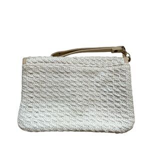 Sarne Vintage 1960's White Clutch Purse Woven Raffia Tan Leather Trim