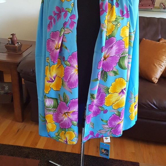 A sarong measuring approx 70" x 45". This is in a beautiful Hawaiian motif with a border. Very versatile. Lovely worn as a cover-up....sarong...scarf .....dress. ...skirt and much more. Youtube offers tying and wearing instructions if you need more than its tag offers. A magic buckle as advertised on TV IS A Free buckle WITH PURCHASE OF A SARONG in your color choice as long as supplies last.