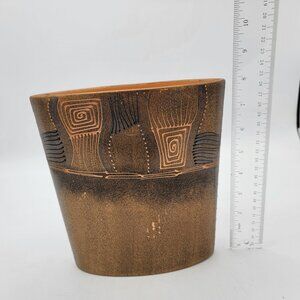 Crafted with care, the Sarra Blu Pottery Vase is a unique addition to any décor, featuring an abstract pattern that embodies contemporary elegance. Its rich brown color and ceramic material make it a versatile piece that can enhance the look of any room, adding a touch of sophistication without overpowering the space. The vase was produced using traditional pottery techniques, showcasing the craftsmanship of Romanian artisans. It's design and engraving features lend it a timeless appeal, ideal for those who appreciate the beauty of modern artistry.