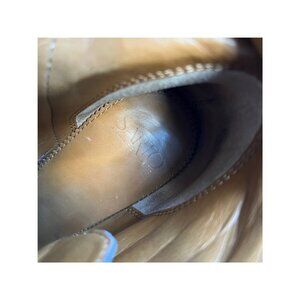 These Sarto Lace Up Brown Ankle Boots with leather uppers are in used condition. The heals have some smudging as shown in the pictures and the leather uppers have a pilled look that adds to their vintage appeal.