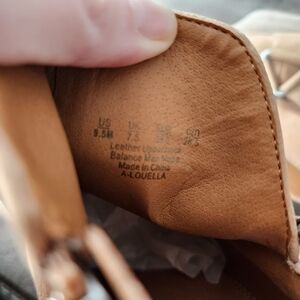 Sarto Louella Leather Block Heel Ankle Boots. Women's size 9.5. Preowned in good condition. The Sarto Louella Ankle Bootie is a sleek ankle boot featuring a walkable heel and chic, western influence. Side zip closure Decorative wraparound straps with hardware detail V-shape side slits Smooth lining.