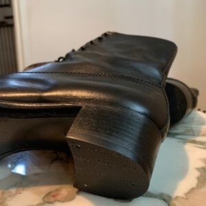 Beautiful fine soft black leather lace-up ankle boots with ties. Full leather interior and leather soles with new heels (1.5"). Overall in very good condition. Very comfortable and classic. Made in France. Size 38 (European sizing)/Size 7.5 (US). Asking $125.