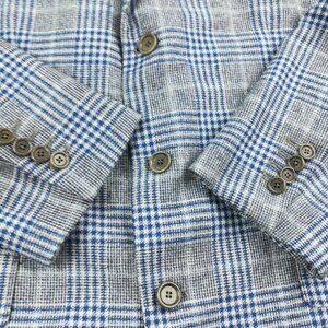 Sartoria Partenopea Sport Coat Wool Prince of Wales Check Blue Gray 44R