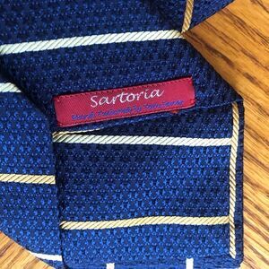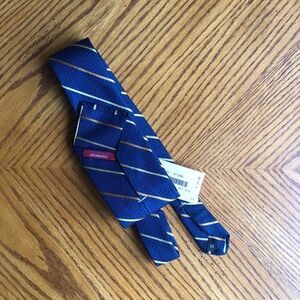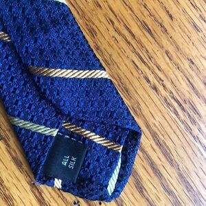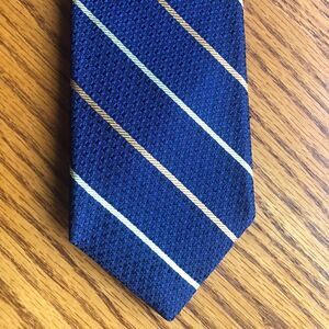 Beautiful navy blue with light and dark gold diagnol stripes.