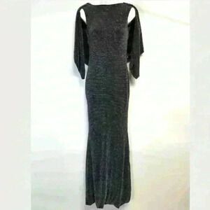 Sarvin Exclusively Made in the Uk Marylin Cowl Back Metallic Gown Fish hem Sz M