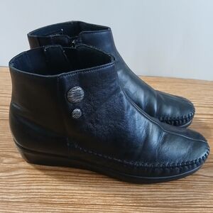 Stylish black leather ankle boots. Perfect for any occasion.9.5