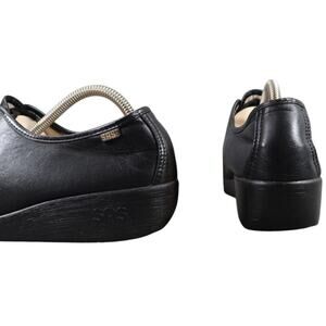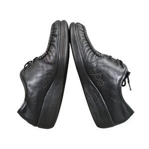 Used Sas Shoes Womens 9 WW Bounce Lace Up Moc Comfort Classic Leather Black Career Wedge