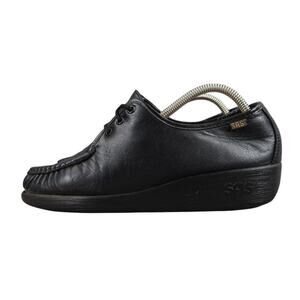 Sas Shoes Womens 9 Bounce Lace Up Moc Comfort Classic Leather Black Career Wedge