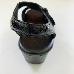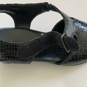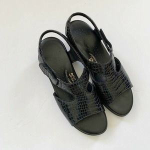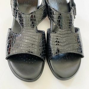 Sas Womens Suntimer Slingback Sandals Black Snakeskin Embossed Hook And Loop 7 M