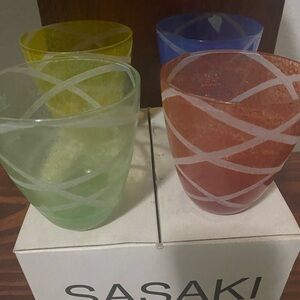 Sasaki Art Nouveau Colorful Rare Tumbler Glass White Swirl Set Of 4 New In Box