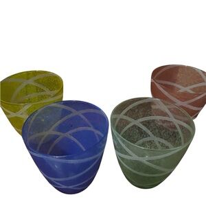 Set of four Sasaki glasses in vibrant colors. Perfect for adding a pop of color to your table setting.