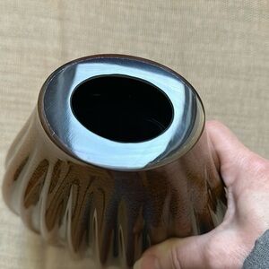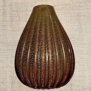 Sasaki Italian Crystal Vase Hand Crafted Marea 11” Tear Drop Ribbed Tiger’s Eye