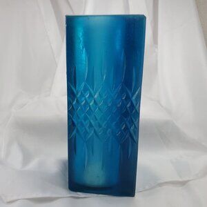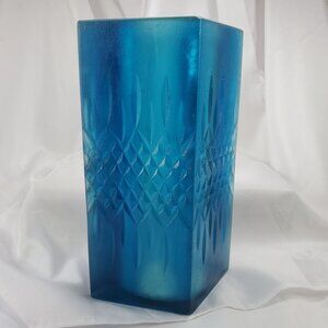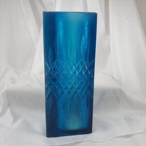 Sascha Brastoff MCM Blue Resin Square Diamond Candleholder 1950's Signed 9 3/4”