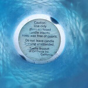 This blue resin vase by Sascha Brastoff provides a striking centerpiece with its intricate cut patterns. Ideal for adding an artistic touch to home decor, it can double as a candle holder with appropriate glass-enclosed candle inserts. Its vivid color and design make it a standout decorative piece.