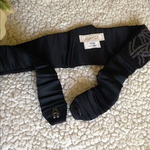 This is a beautiful black and gray beaded Vintage sash from Marshall Fields. It measures approximately 34" long and it has one back hook closure. This sash is in excellent condition, no missing beads.