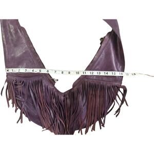 Experience luxury and functionality with this Power Berry Full Fringe Genuine Leather Sash Bag, a stylish and hard-to-find accessory for women from Sash Bag. Crafted from 100% real leather with a beautiful finish, this large crescent-shaped crossbody bag features a vibrant purple exterior, silver hardware, and a secure zipper closure. The adjustable purple cross-body strap and thoughtfully designed pockets make it perfect for travel, everyday wear, and casual outings. Its classic design adds a touch of elegance to any outfit.