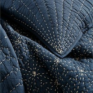 Sashiko Hand-Stitched Cotton Quilt FULL/QUEEN Blue