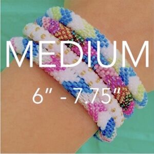 These bracelets are handmade in Kathmandu Valley Nepal . Artisan women use glass beads and one by one string them . Helps support and feed them .