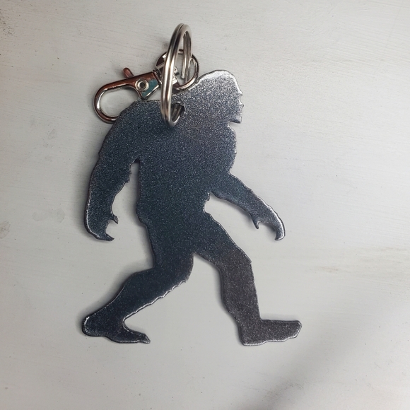 Professionally powder coated sasquatch Keychain. Approximately 3" tall. This one is coated in Kingsport metallic grey