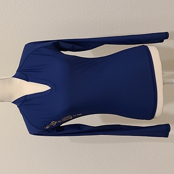 Dark blue rash guard. Used once and is in excellent condition. Asian size XL. Fits like a US Medium. 80% Nylon 20% Elastane.