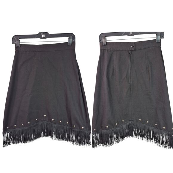 Sassa USA Black Fringe Studded Western Flare Vintage Skirt 7 / 8 26 Waist