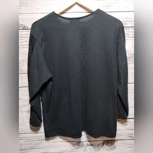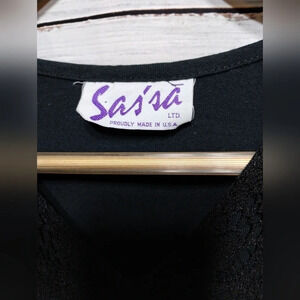 Introducing the stunning Sas'sa Vintage Western Fringe Black Blouse! This exquisite piece features silver western hardware, adding a touch of elegance to its black-on-black design. The detailed 3/4 length sleeves add a stylish flair to the overall look. Although there is no specified size, the measurements indicate that it would fit comfortably in the range of M-L. With a 22" armpit to armpit measurement and a length of 26", it's always a good idea to measure yourself to ensure the perfect fit. There is a bit of fraying on the tassels, but otherwise this is in good condition.