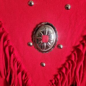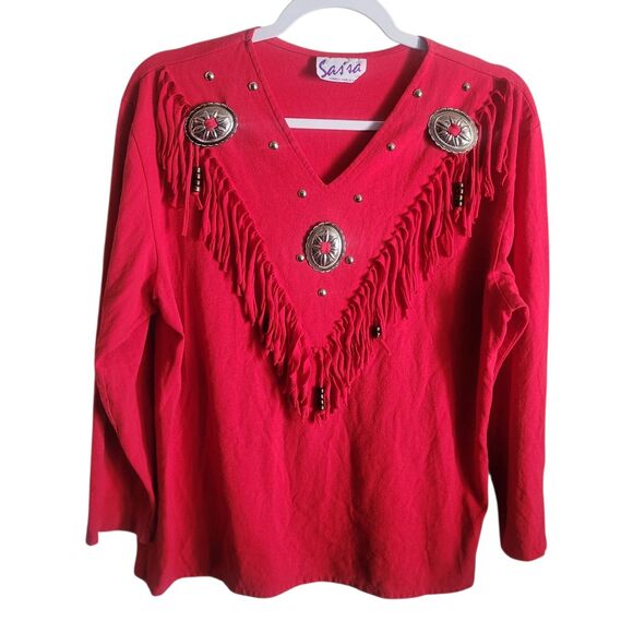 Sas'sa Western Fringe Top Womens Size Medium Red Beaded Concho's Cowgirl Vintage