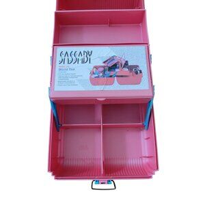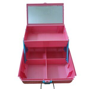 Sassaby Deluxe Pink Cosmetics Organizer Mirror Compartments Sewing Makeup Travel