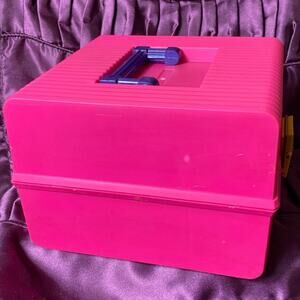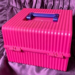Sassaby Pink Yellow Purple Makeup Organizer Carrying Train Case Barbie NO Tray 80’s Vintage