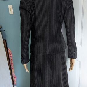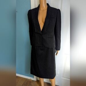 Elegant black pinstripe blazer and skirt set. Perfect for professional settings.