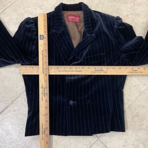Sasson Vtg. Y2K Velvet Jacket Whimsygoth Fairy Size 6/7 Navy pin stripes cropped