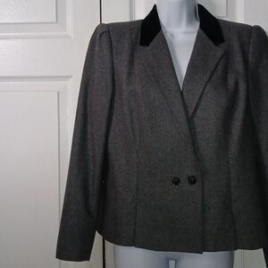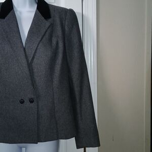 Sasson vintage double breasted gray wool blend cropped blazer Sz 12 NWOT