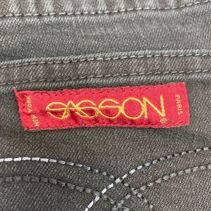 Ooh La La Sassoon! The original disco era jean brand. Dark black w/ red lining of pockets and inside finishing. Cool stitching subtly 3 color on back pockets. Amazing mint condition! Has some stretch. Great stitching on back pockets. Waist is 17.5” flat , rise is high 11” inseam is 31”. Top to bottom 40”. No wear or flaws of any kind.