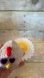 She’s made with acrylic yarn, plastic sunglasses, (glued on with gorilla glue hot glue), and filled with poly fill stuffing.