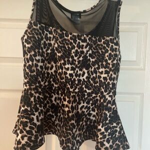 Sassy Leopard Print Mesh Peplum Top Size XL