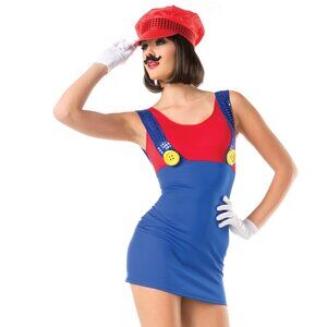 Sassy Mario Costume Dress with Suspenders and Sequin Hat