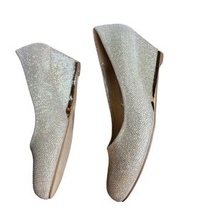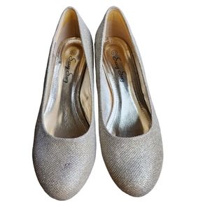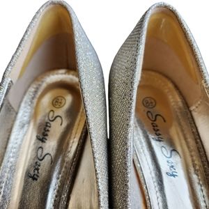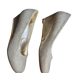 tags: night out gold Metallic date night wedge heel office workwear round toe glitter shiny pumps