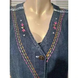 Sassy Sista Embroidered Studded Sparkle Day Of Dead Skull Denim Vest Size-XXLarg