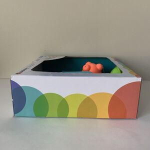 Sassy Whirling Waterfall Bath Toy Set. A STEM toy for ages 6+ months. Develops fine motor skills. Pour water in and watch the wheel spin! Scoop and pour water with the 2 cups! Dunk and strain water with the orange sphere! The suction on the whirling wheel holds it onto the bottom or side of tub. BPA free, no paint. New in box, only a small tear at the top of the box from handling.
