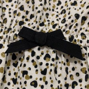 NWT Sassy glittery gold & black animal print on white, long sleeve, newborn onesie with snaps and a black bow. Cheetah, leopard, spots. Just One You made by Carter’s. Perfect for a baby shower gift. Bundle 2 or more items and save 20%. Reasonable offers are welcome. I will either accept or counter. Thank you for checking out my Poshmark closet 😊