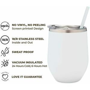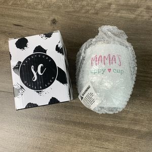 * THE DEETS: 12 oz white powder coated vacuum insulated stainless steel wine glass tumbler with slide closed lid, reusable straw, anti-slip silicone base and cute saying, "Mama's Sippy Cup" imprinted on the front